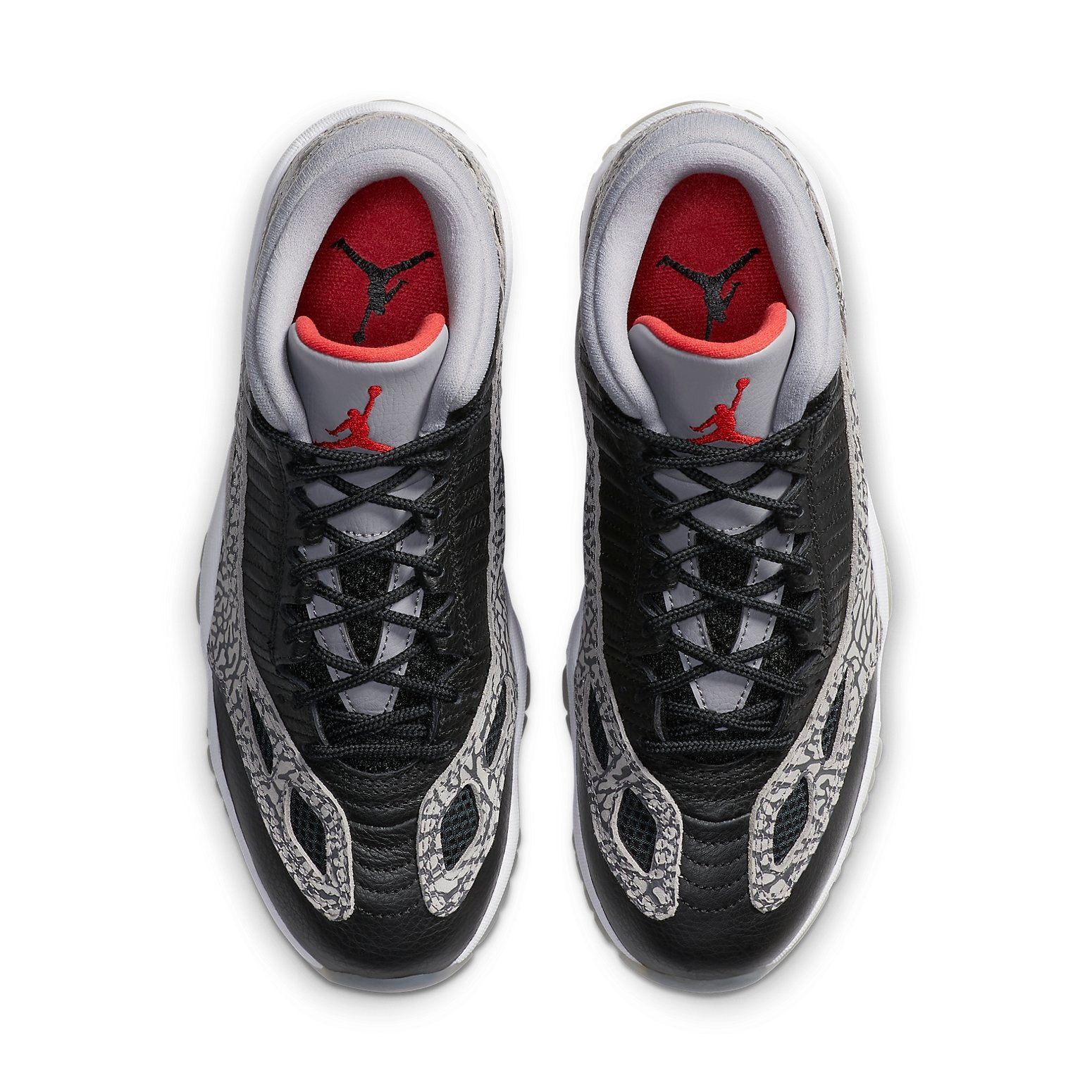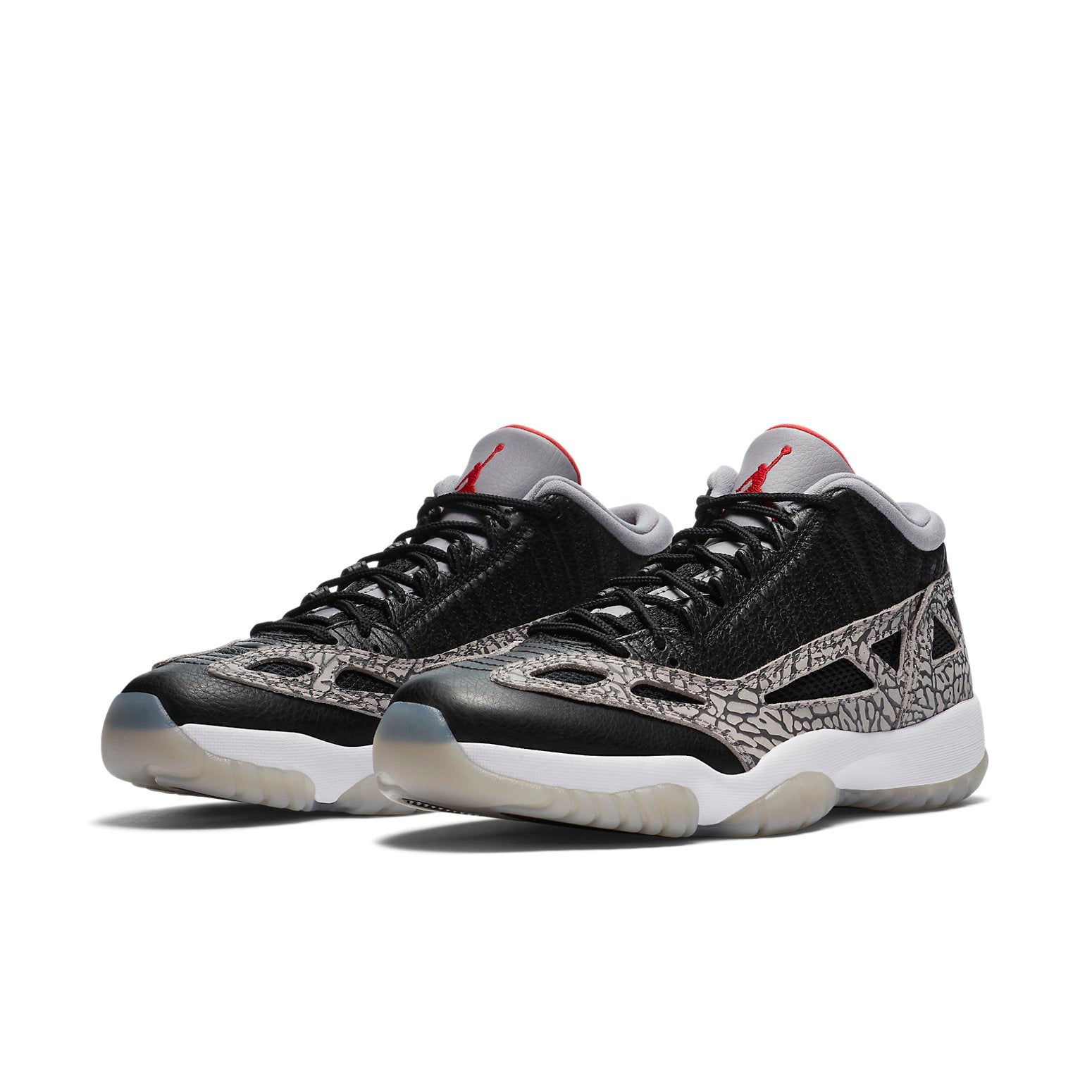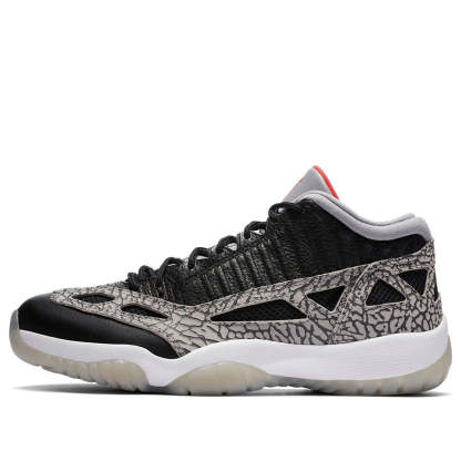 The Nike Air Jordan 11 Low "Black Cement" features the famous elephant print found on Air Jordan 3s. Featuring a black and gray main color scheme, a splash of orange can be found on the tongue in the form of the Jumpman logo. The sole is infused with Air cushioning to provide comfort and durability.