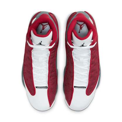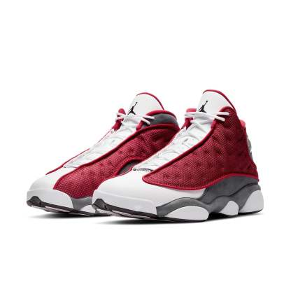 This Nike Air Jordan 13 Retro "Gym Red Flint Grey" is dressed in Red, Grey, Black, and White colorway. The upper is built with premium white leather and accenting flint grey hits. The Jumpman-branded jewel right underneath the foot’s arch boasts the titular scarlet tone completed the design. SKU: DJ5982-600 Release Date: May 1, 2021 Color: GYM RED/FLINT GREY/WHITE/BLACK