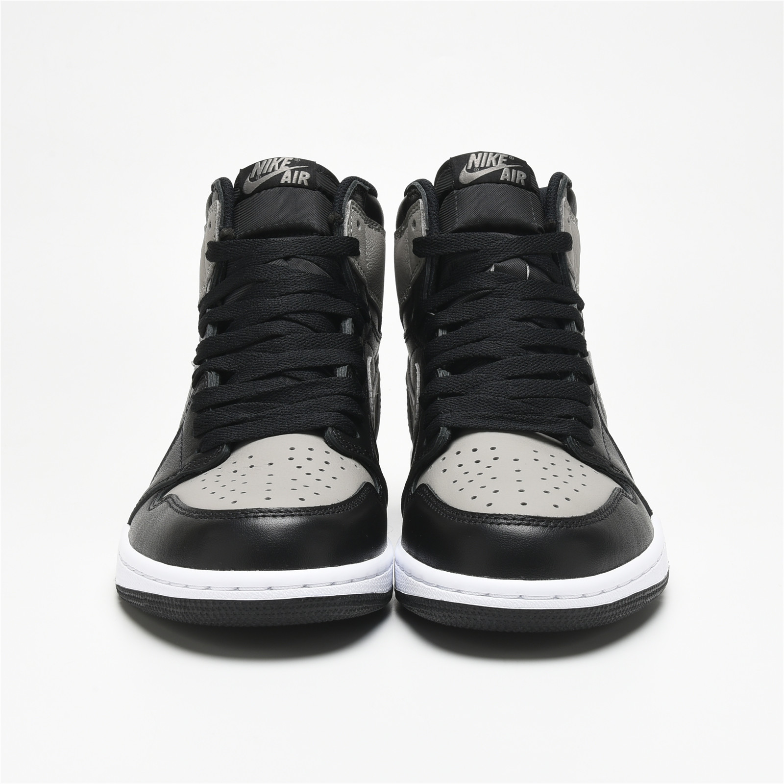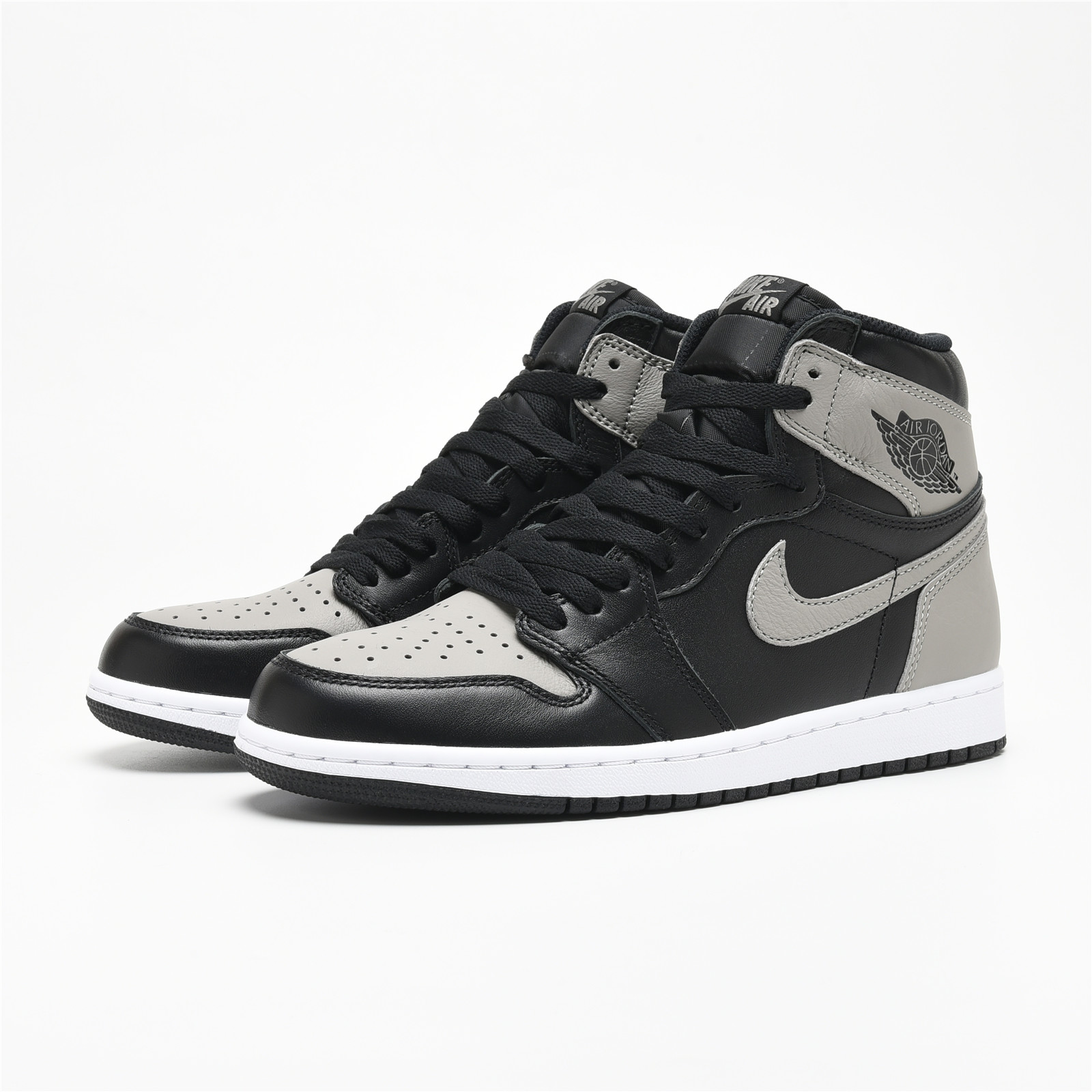 Despite the name, the AIR JtggORDAN 1 Shadows are a pair that will put any fit of yours firmly in the spotlight. This very rare OG colorway has now hit shelves only three times, making these a must-own for any AJ1 collector. The shoe features a black and grey leather upper with original "Nittgke Air" branding on the tongue tag and insoles, along with a white midsole and black outsole.