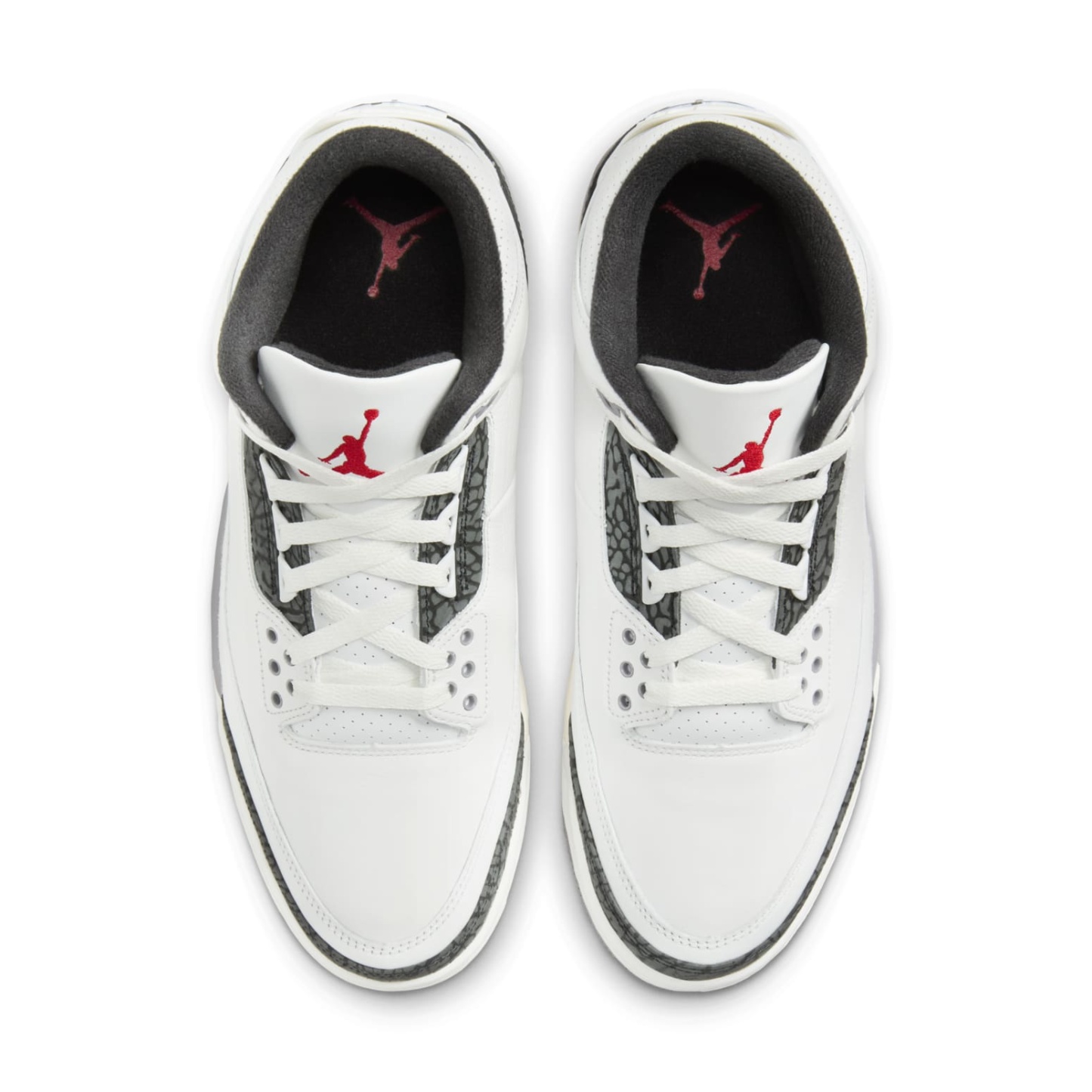 The Air Jordan 3 Retro 'Cement Grey' is a classic re-release featuring a clean white leather upper contrasted with iconic grey elephant print overlays. Pops of Fire Red on the Jumpman logo and heel tab add a vibrant touch. This timeless design, built on the innovative Air cushioning system, offers both style and comfort, making it a must-have for sneaker enthusiasts.