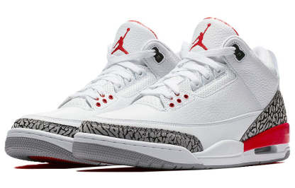 When it comes to iconic sneakers, it doesn't get much more legendary than the Air Jordan 3 Retro. First released in 2006 in support of Hurricane Katrina relief efforts, this shoe is making a comeback today to honor both Michael Jordan's legacy in this humanitarian effort and his 2009 inclusion in the Naismith Memorial Basketball Hall of Fame. Featuring a white leather upper with cement grey and elephant print details, black and Fire Red accents, and the iconic Jumpman logo on the heel, this sneaker is a true classic. Whether you're a basketball fan or just a fan of great sneakers, the Air Jordan 3 Retro is a must-have for any collection. Order yours today and help support a great cause!